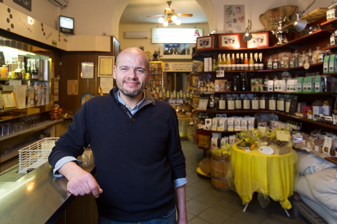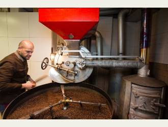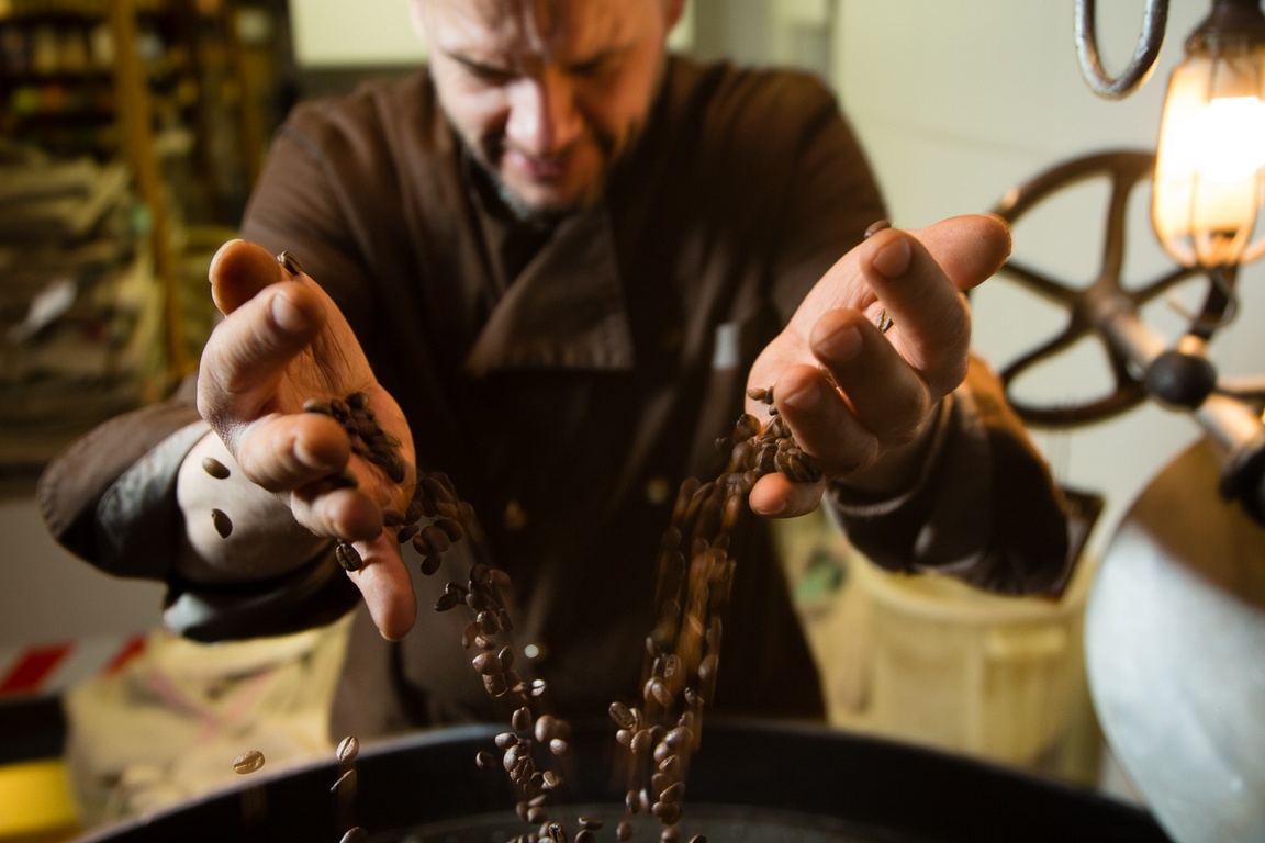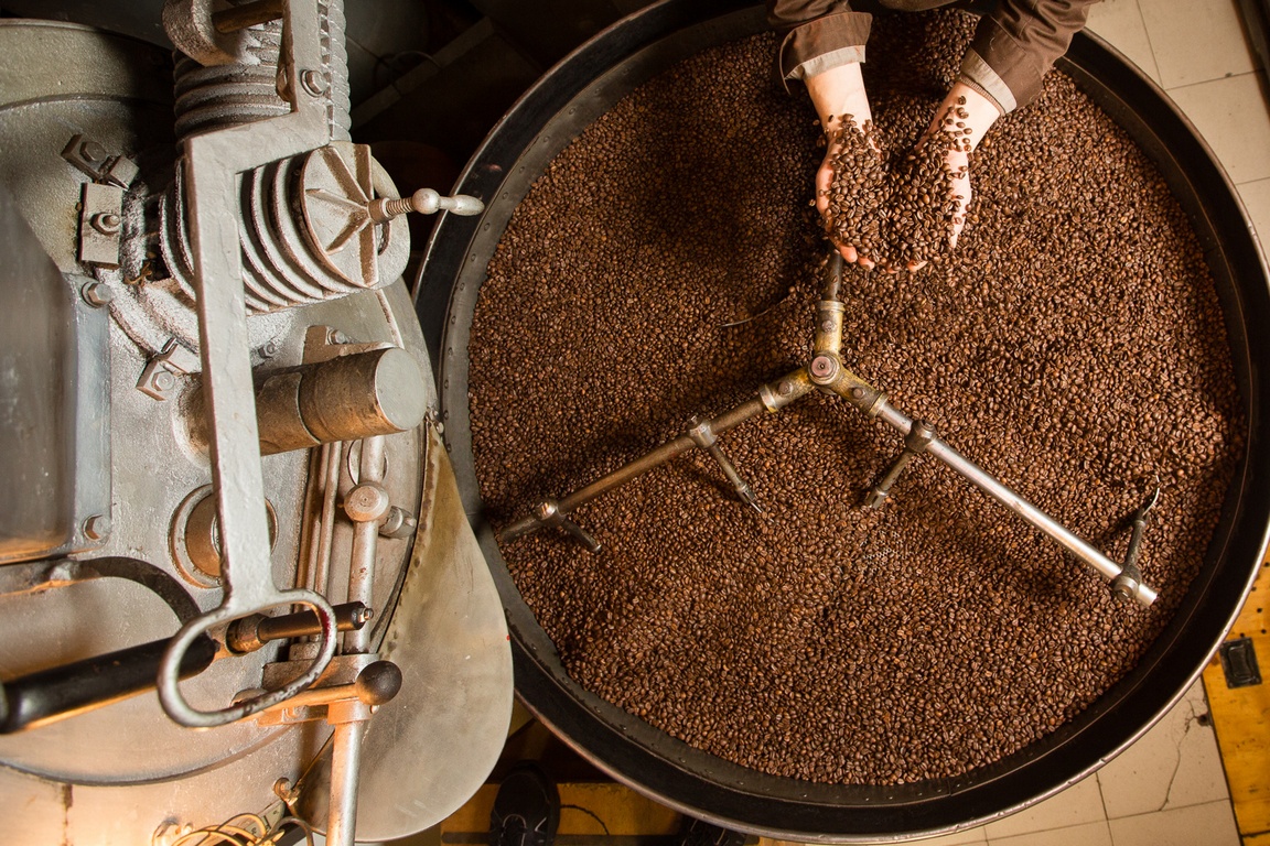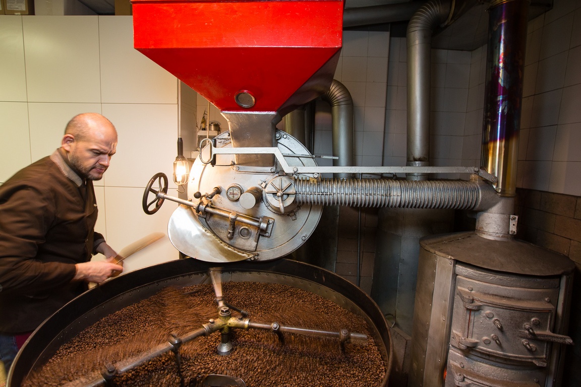 Dal 1946 i caffè vengono tostati in bottega secondo un'autentica tradizione, governando la tostatrice a carbone che funziona a dovere oggi come allora.